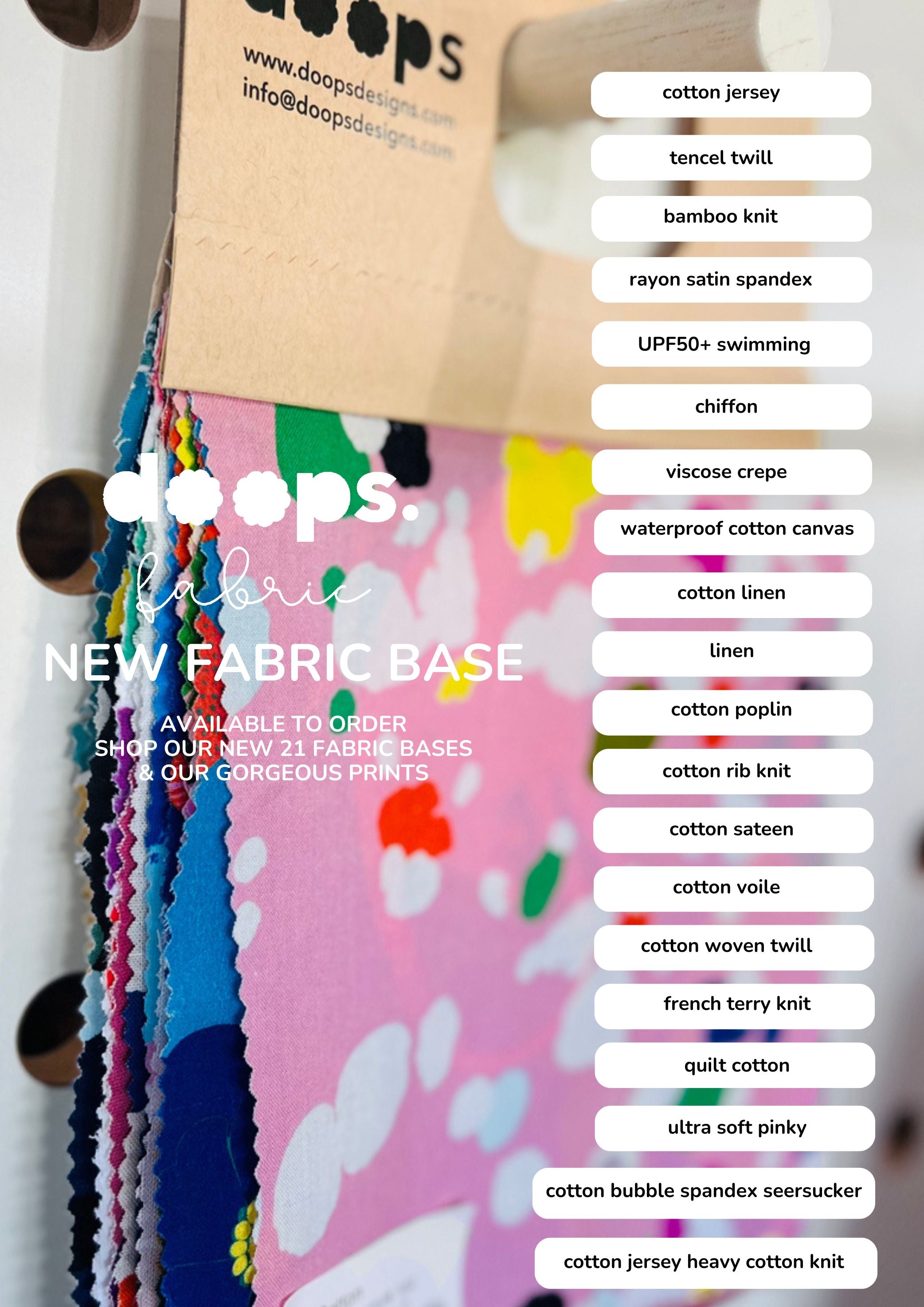 We offer our prints for pre-order because we cannot print all our designs on every fabric. This allows our customers to order both new and classic doops prints on the fabric that suits them best! Please make sure to place your order within the timeframe provided, as this is our last fabric drop for the year, and we will only print what you order. We hope you love the designs as much as the doops team does!