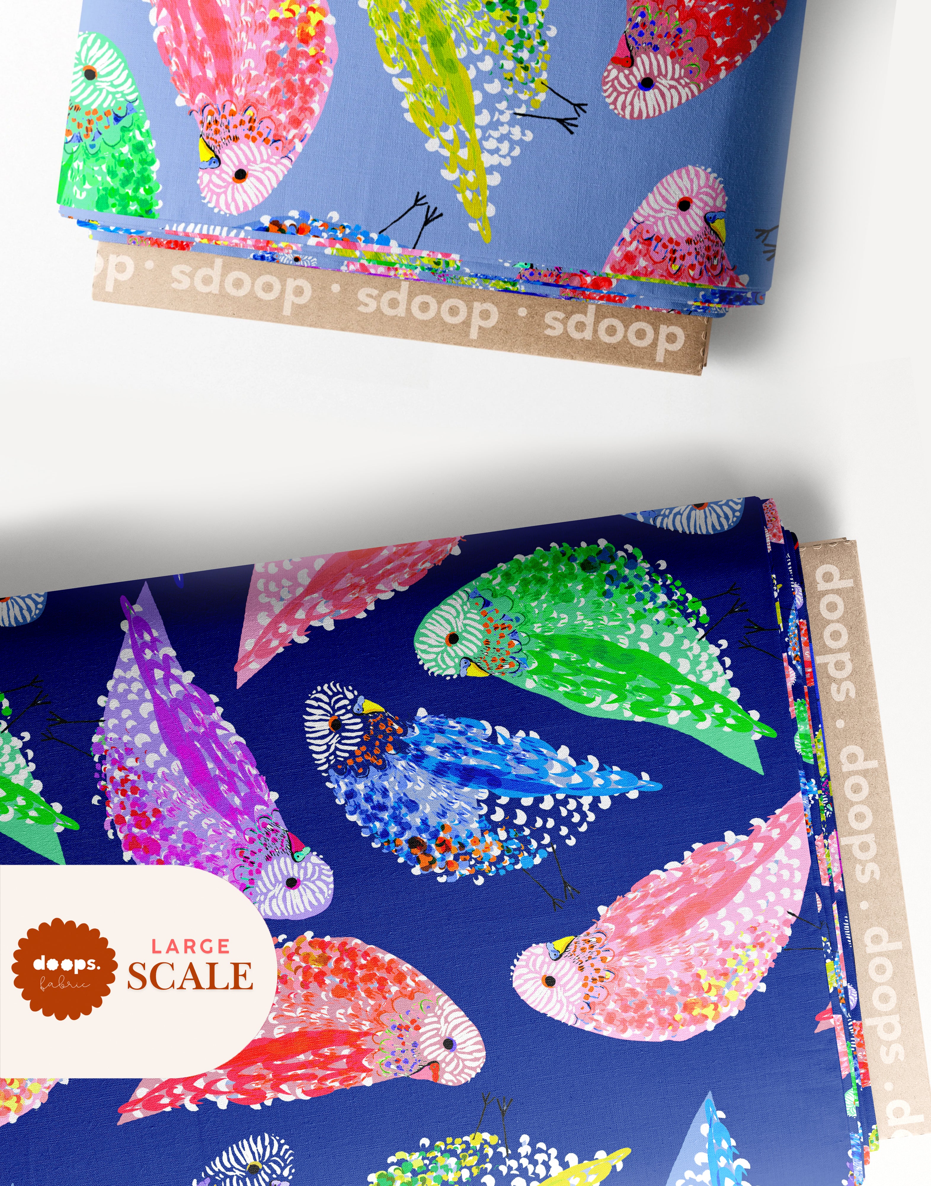 We can print the design in two sizes. Small for quilters and small projects or a larger scale for fashion and homewares. Images show you the 2 scales of what this print will look like on a bolt which is roughly 35cm wide.