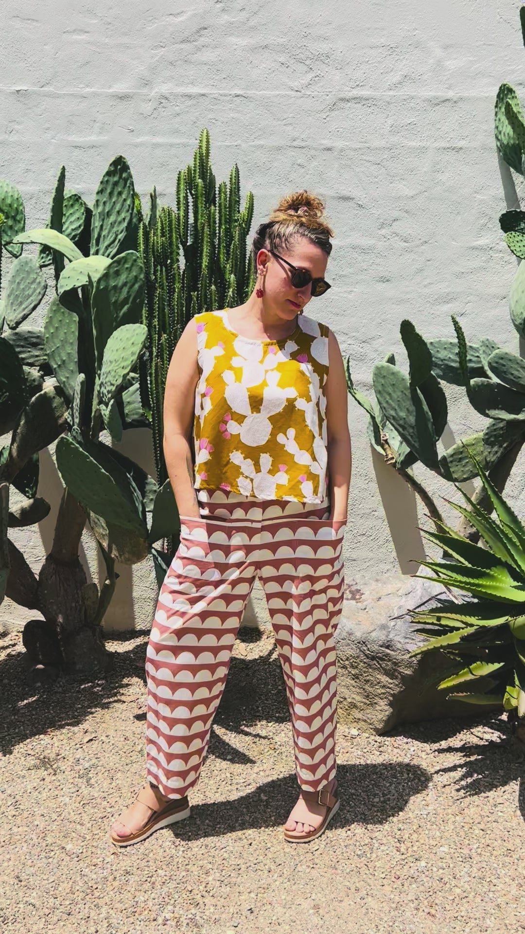Cacti Blush cotton linen top