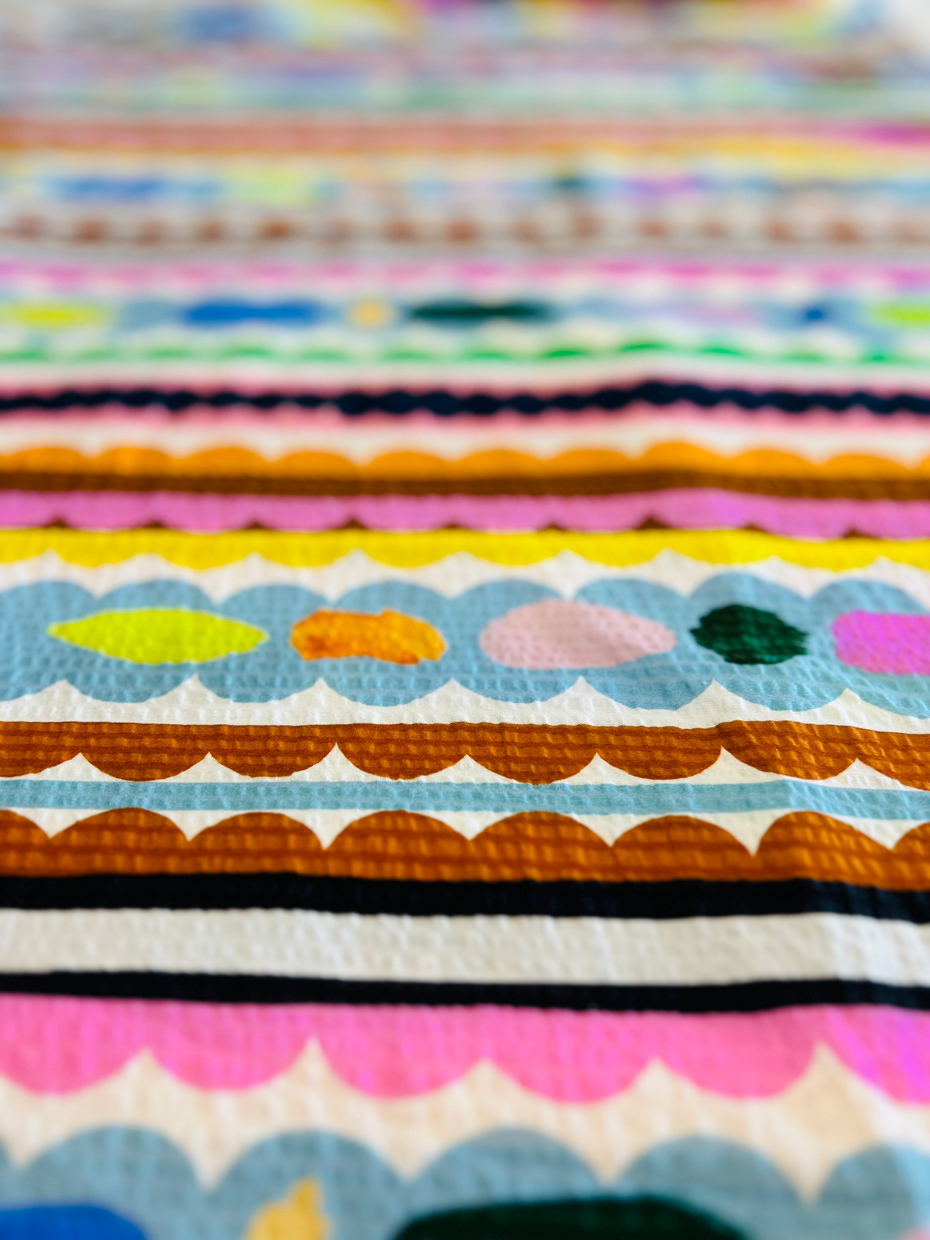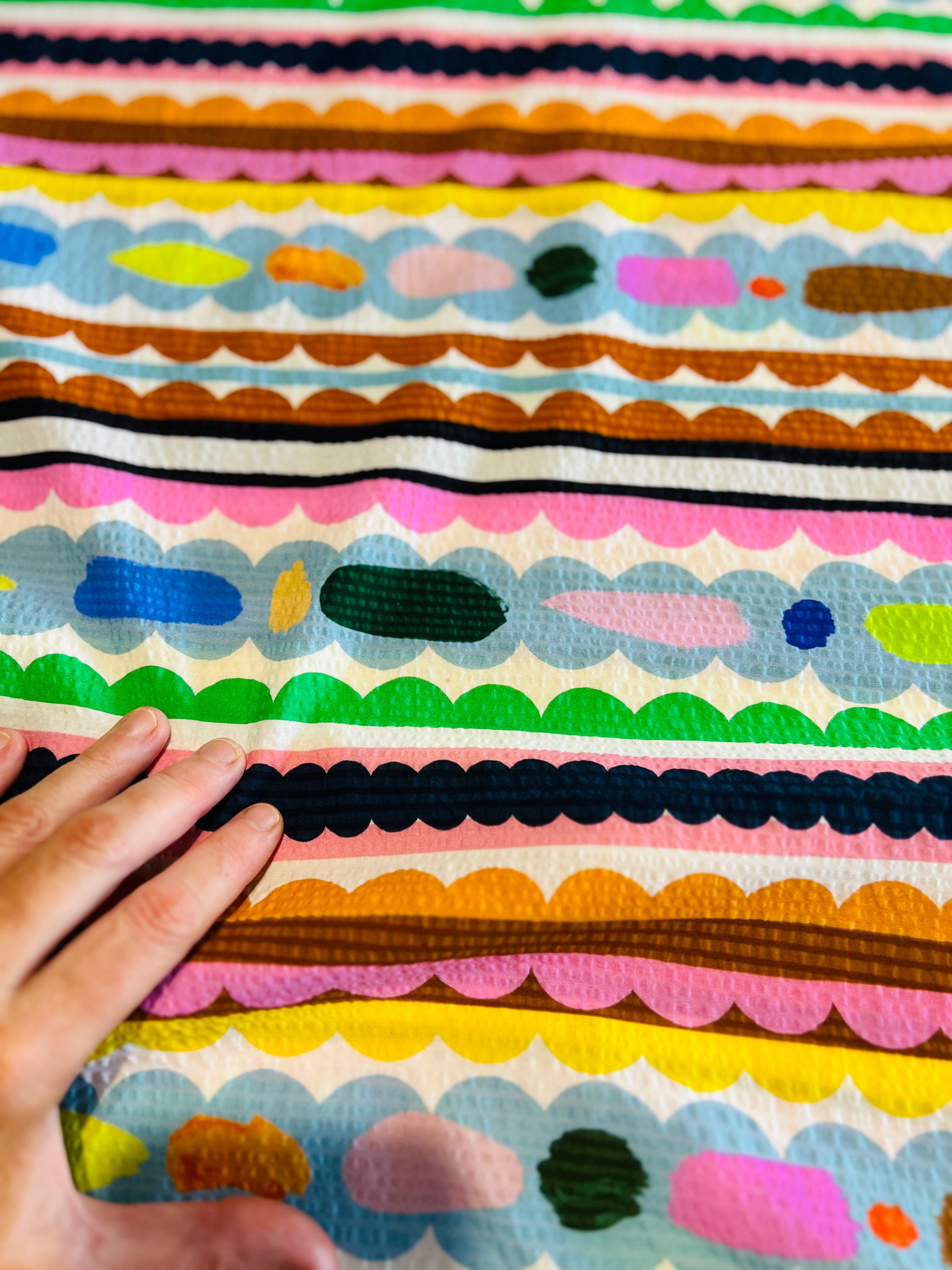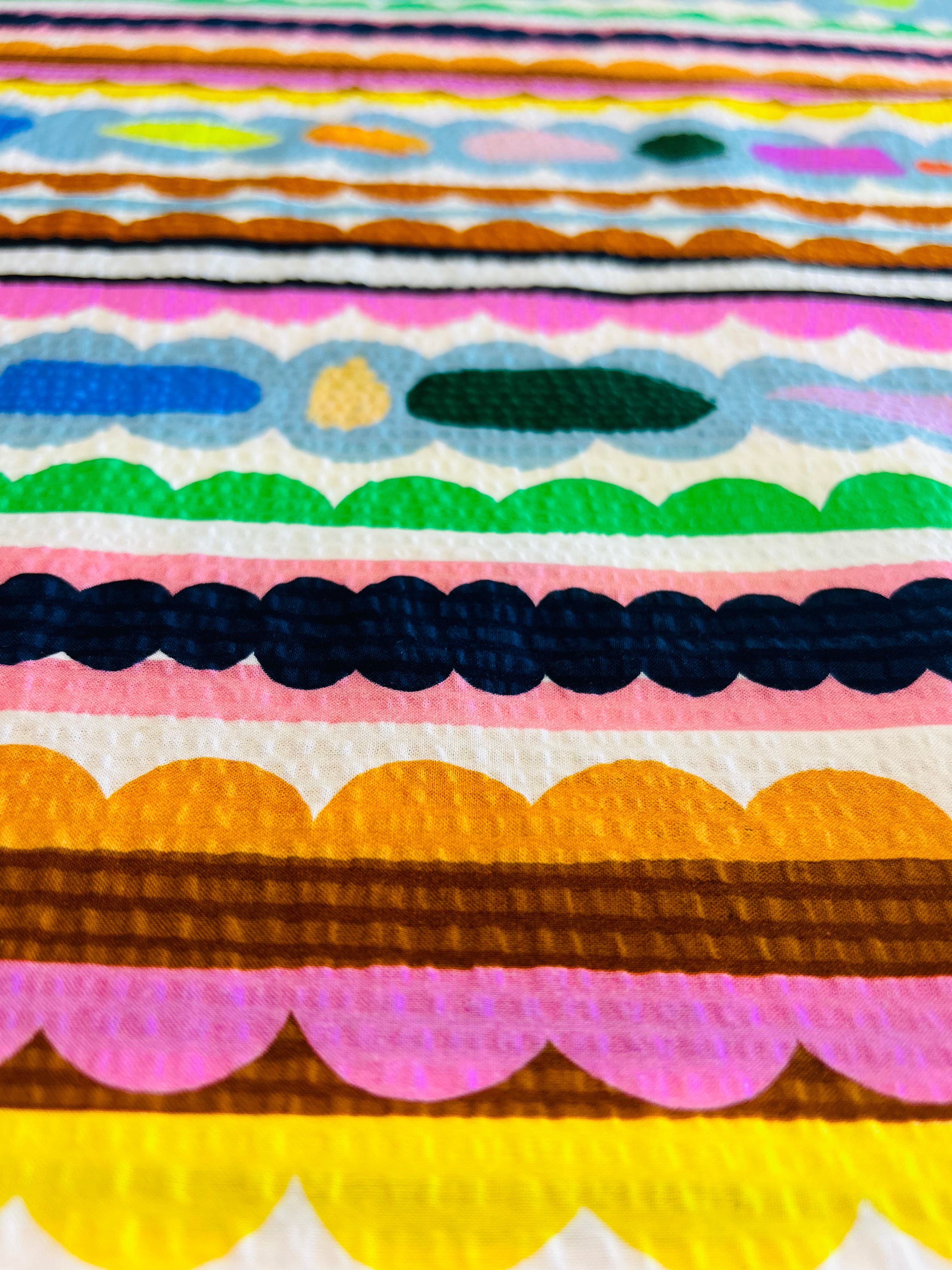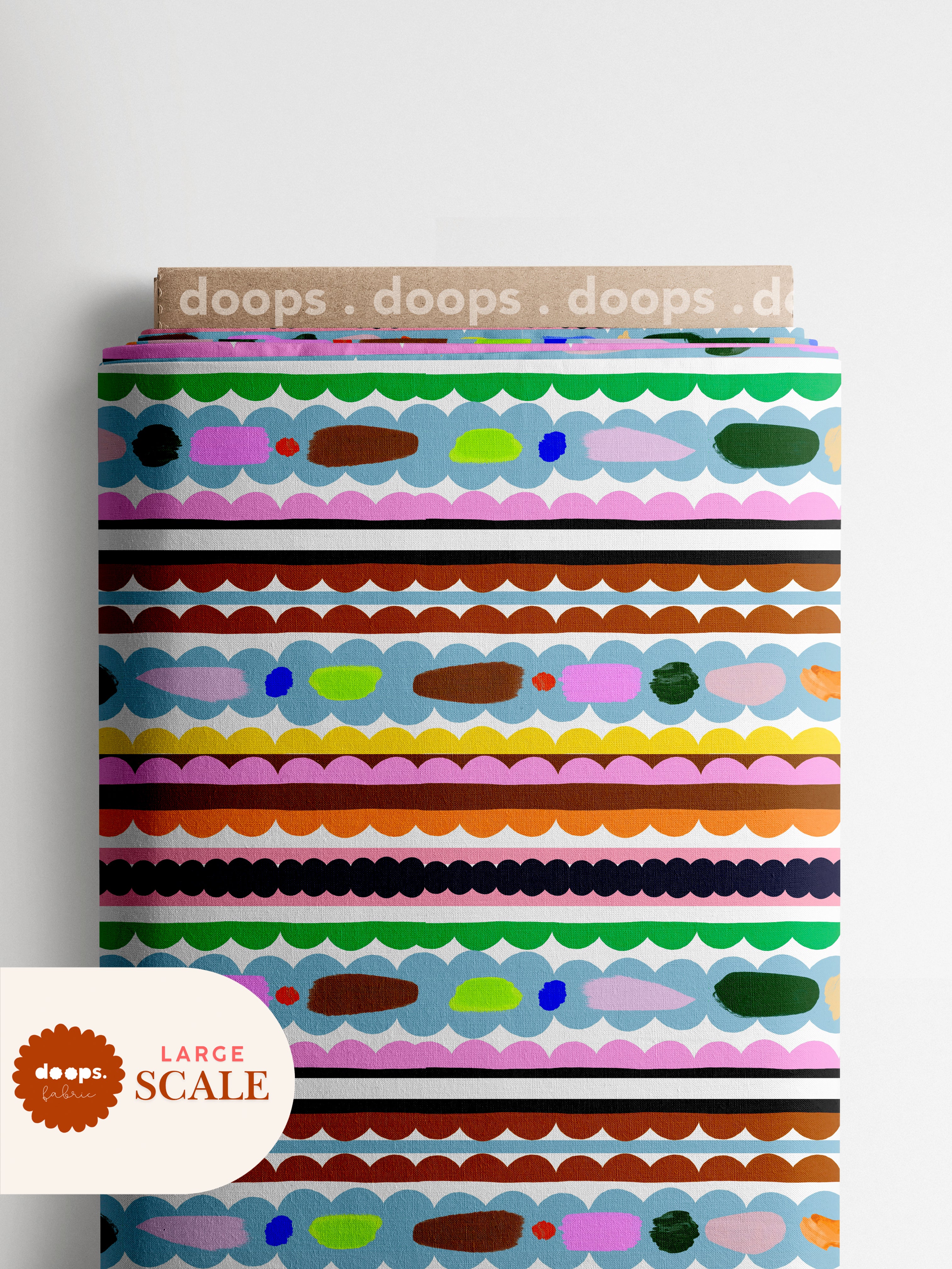We can print the design in two sizes. Small for quilters and small projects or a larger scale for fashion and homewares. Images show you the 2 scales of what this print will look like on a bolt which is roughly 35cm wide.