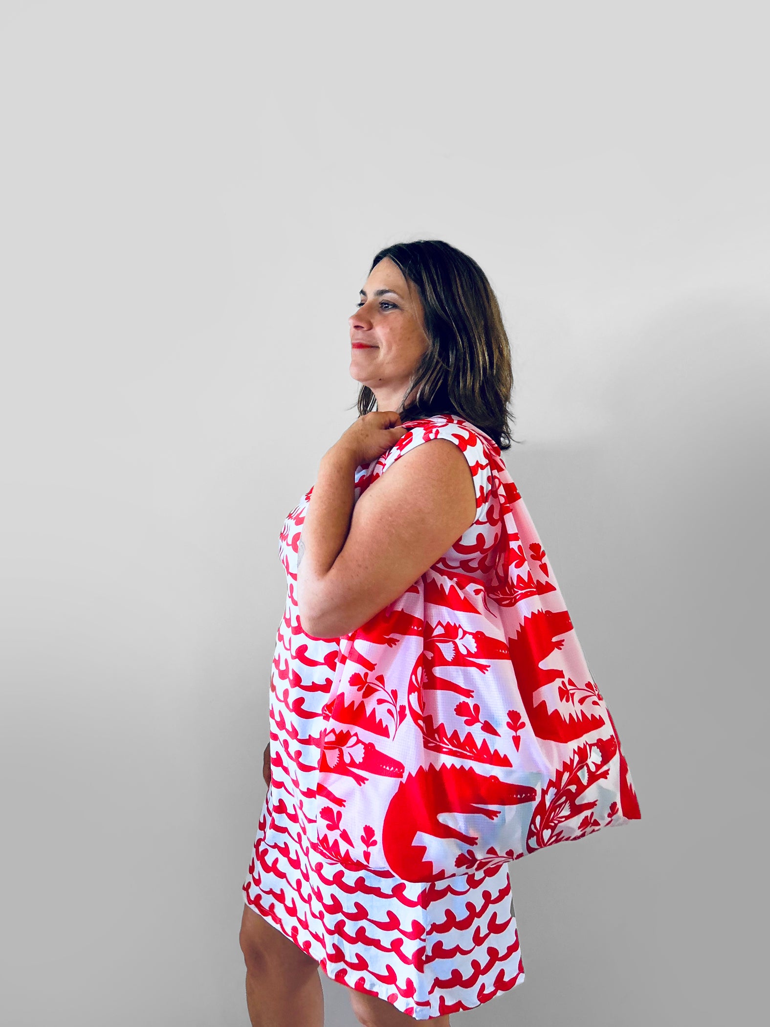 Each bag is light and can be stuffed into the attached pouch. When you use the bag the pouch becomes a small side purse to hold things like keys or sunscreen.