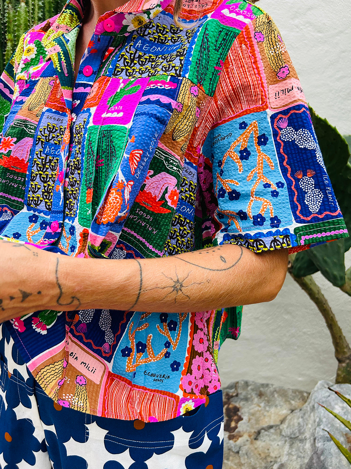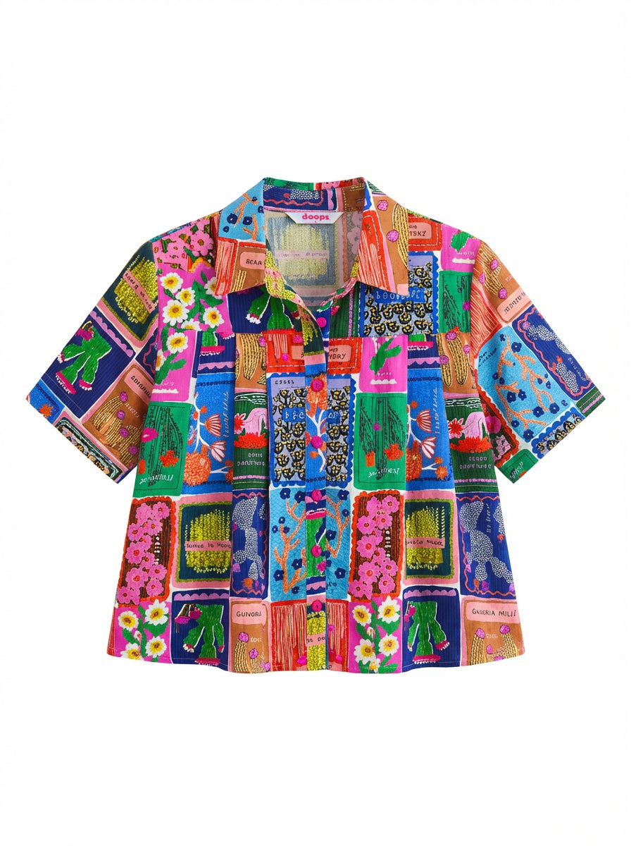Bright and breathable, this women’s seersucker cotton shirt features bold cactus and succulent artwork and a relaxed fit, adding a vibrant touch to everyday wear!